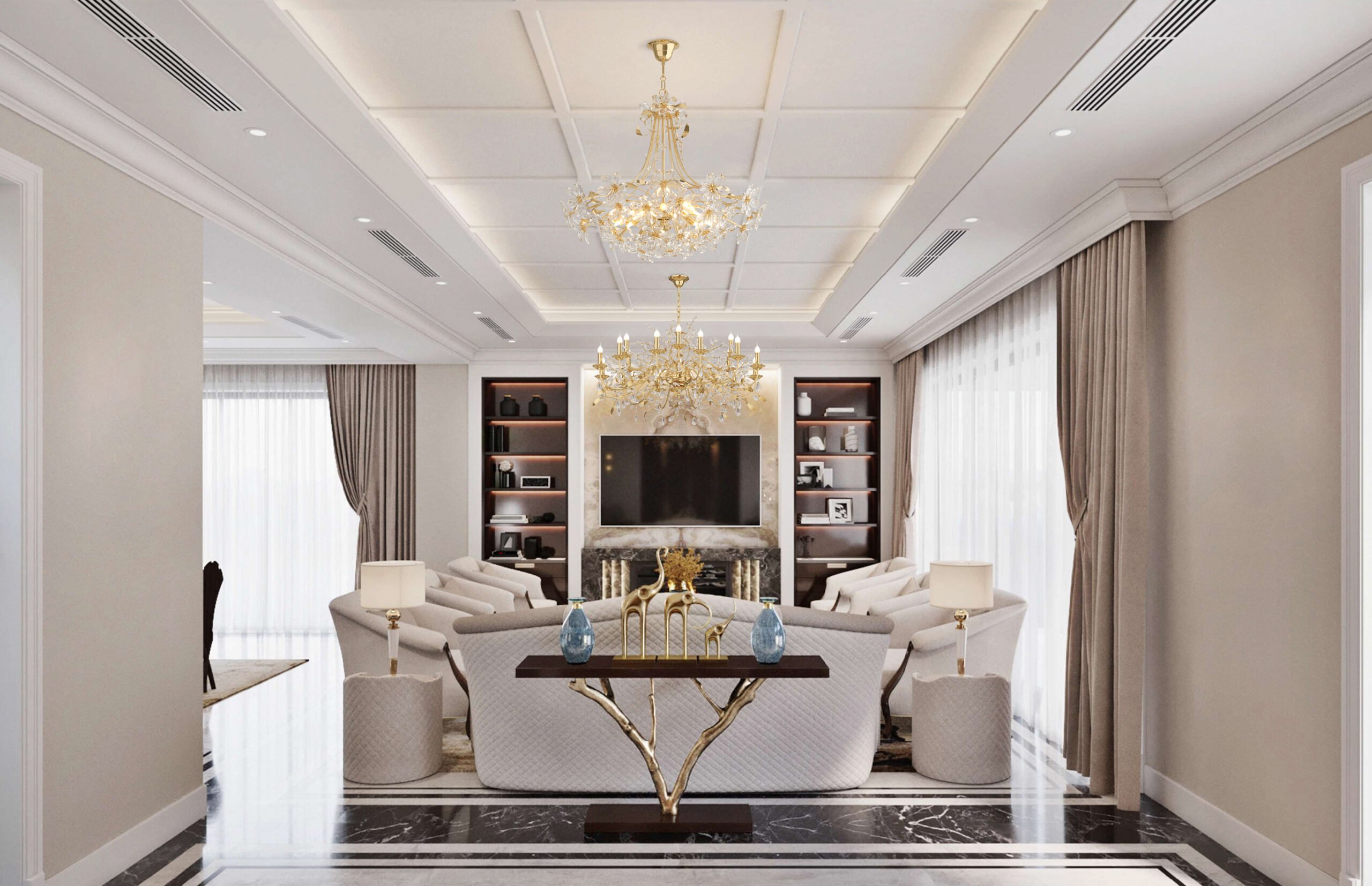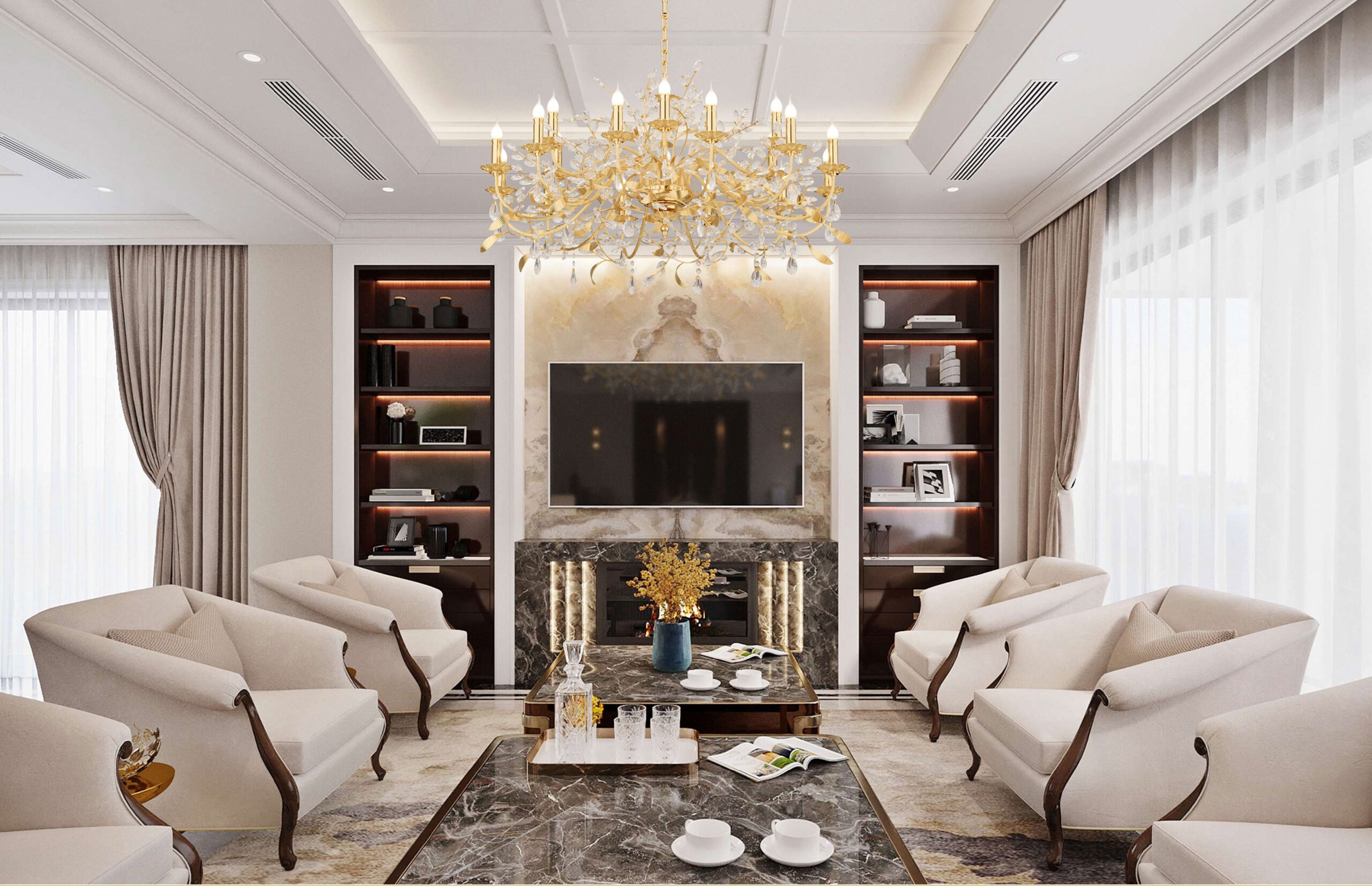 Cavani là đơn vị tiên phong trong việc sử dụng phần mềm chuyên dụng để tính toán kích thước, kiểu dáng của đèn chùm vào phối cảnh 3D của khách hàng, giúp quí khách có thể trải nghiệm một cách chân thực nhất vị trí, không gian lắp đặt đèn trang trí.